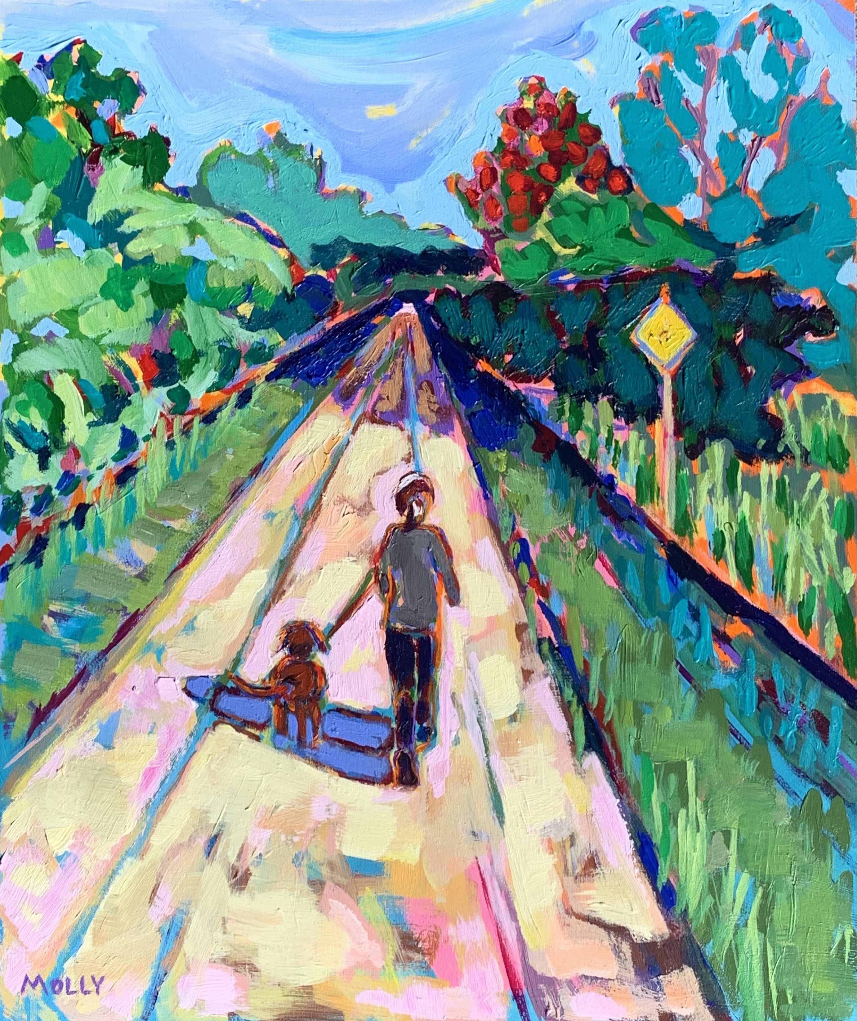 Girl and Her Dog, Military Ridge Trail, 24×20 (sold)