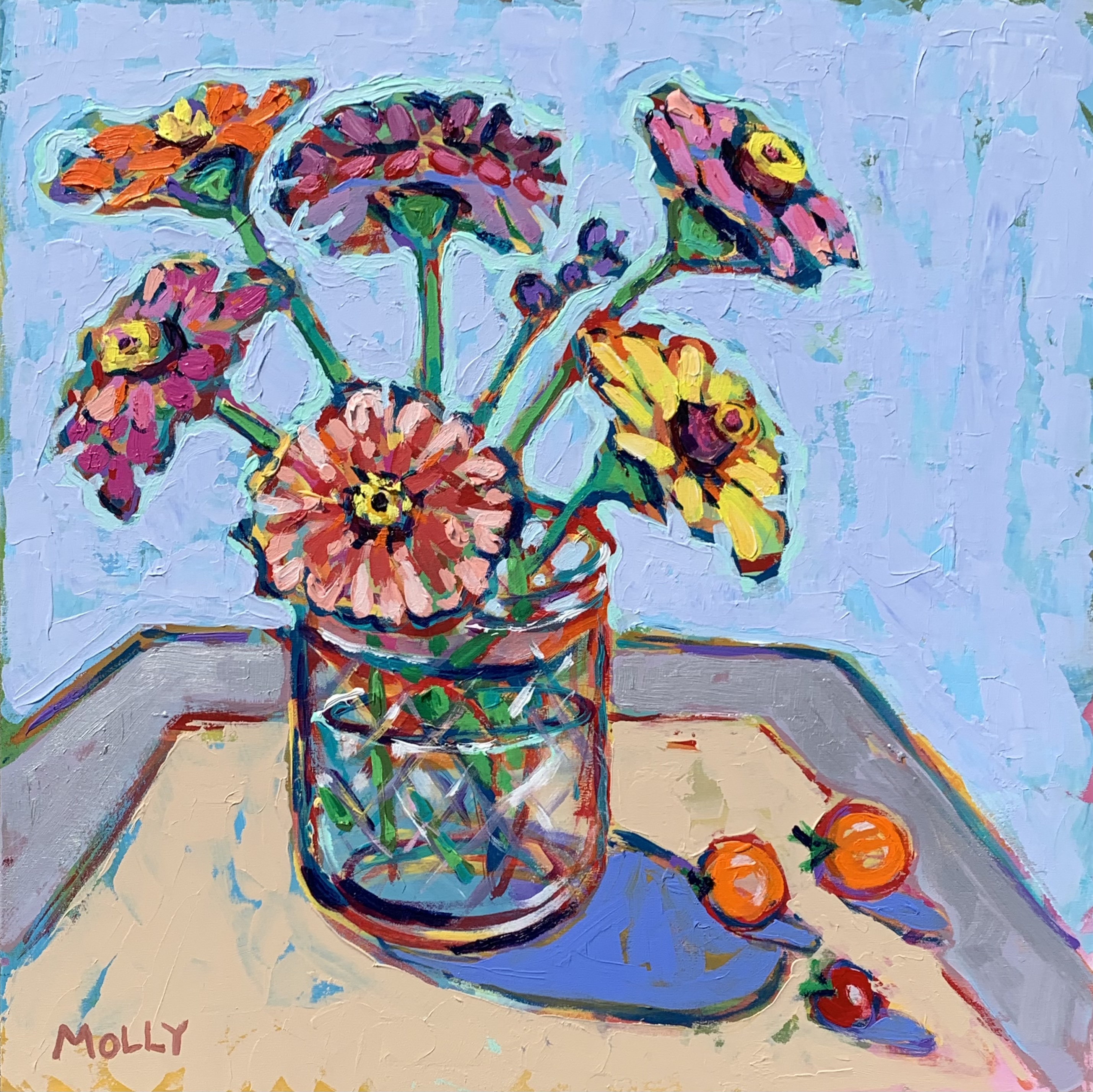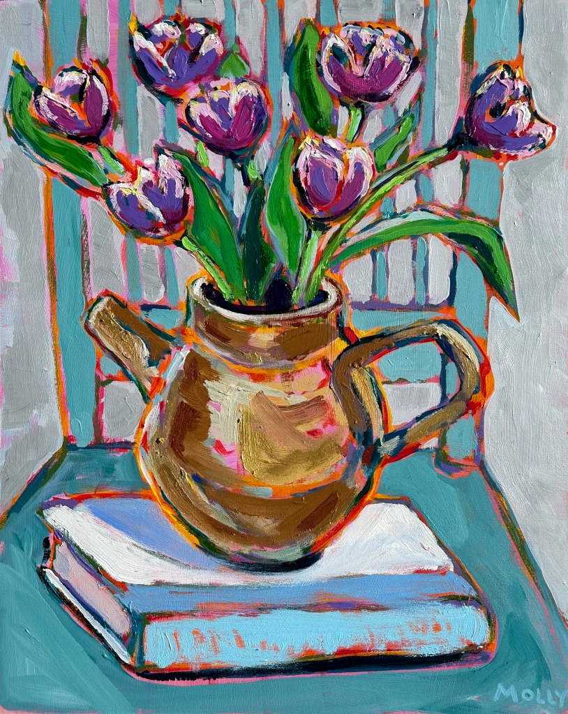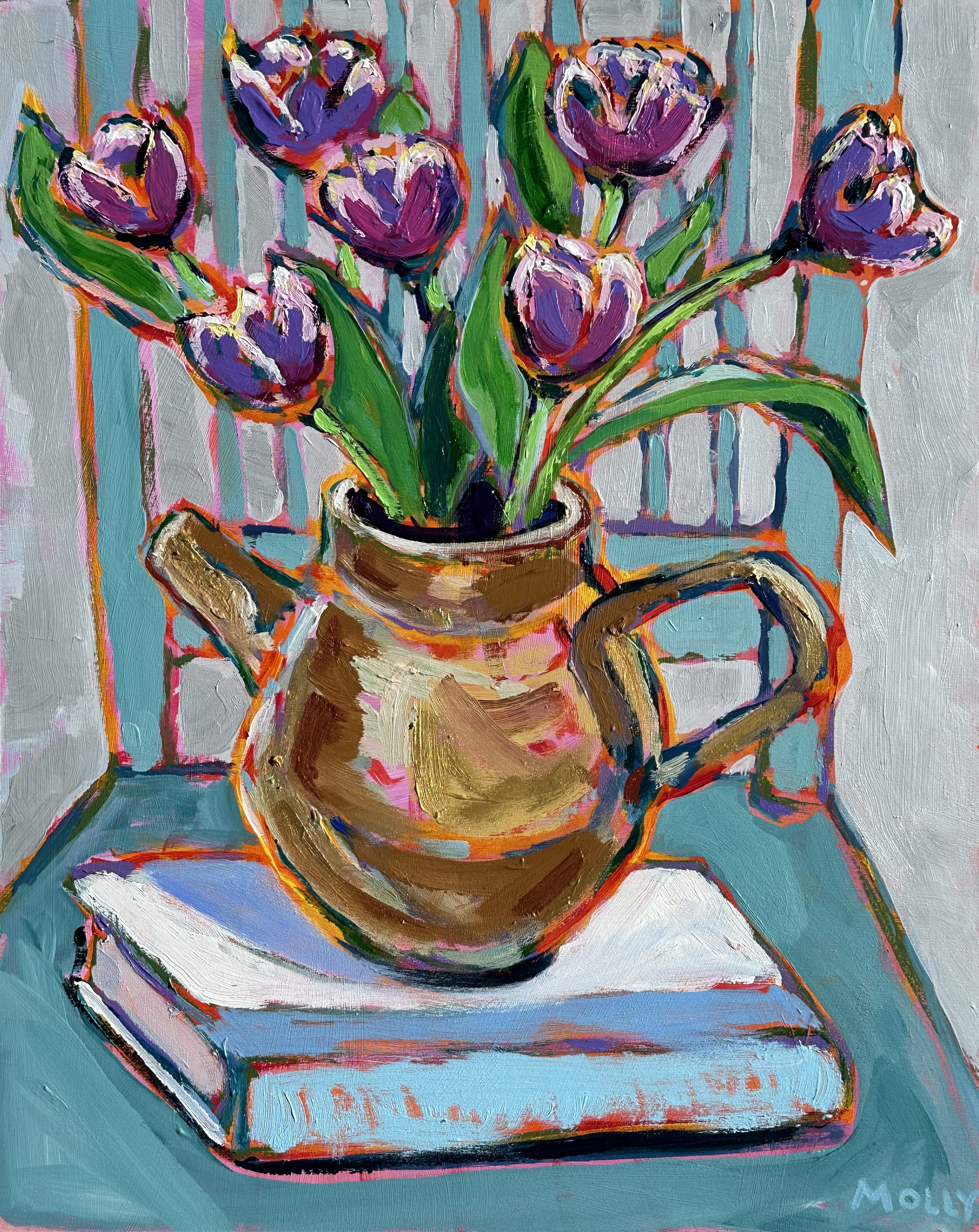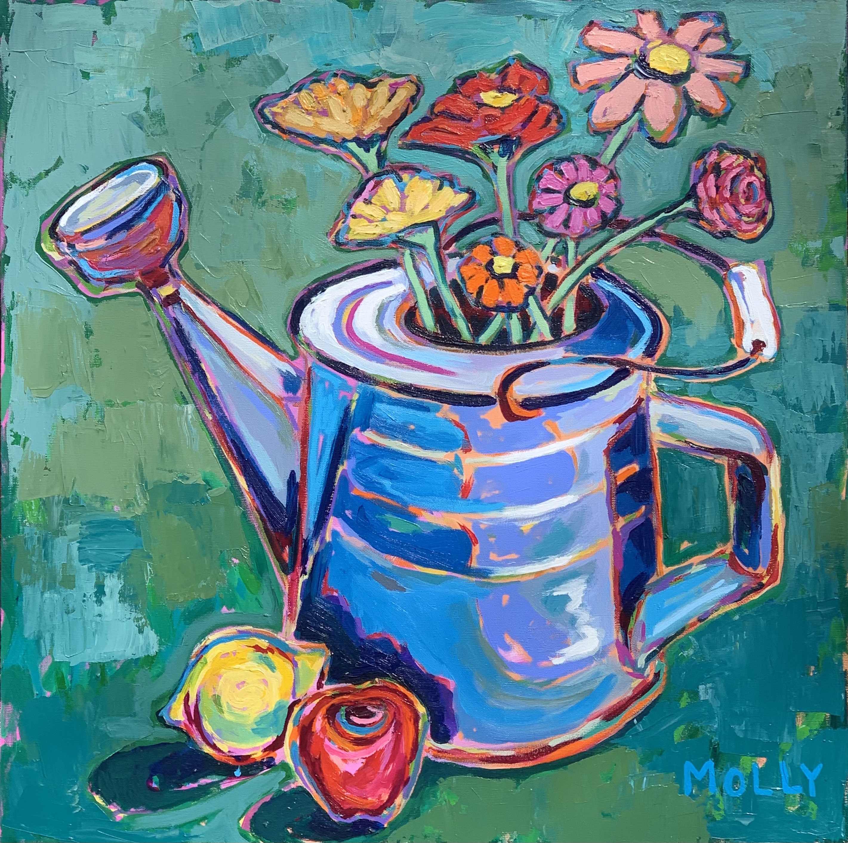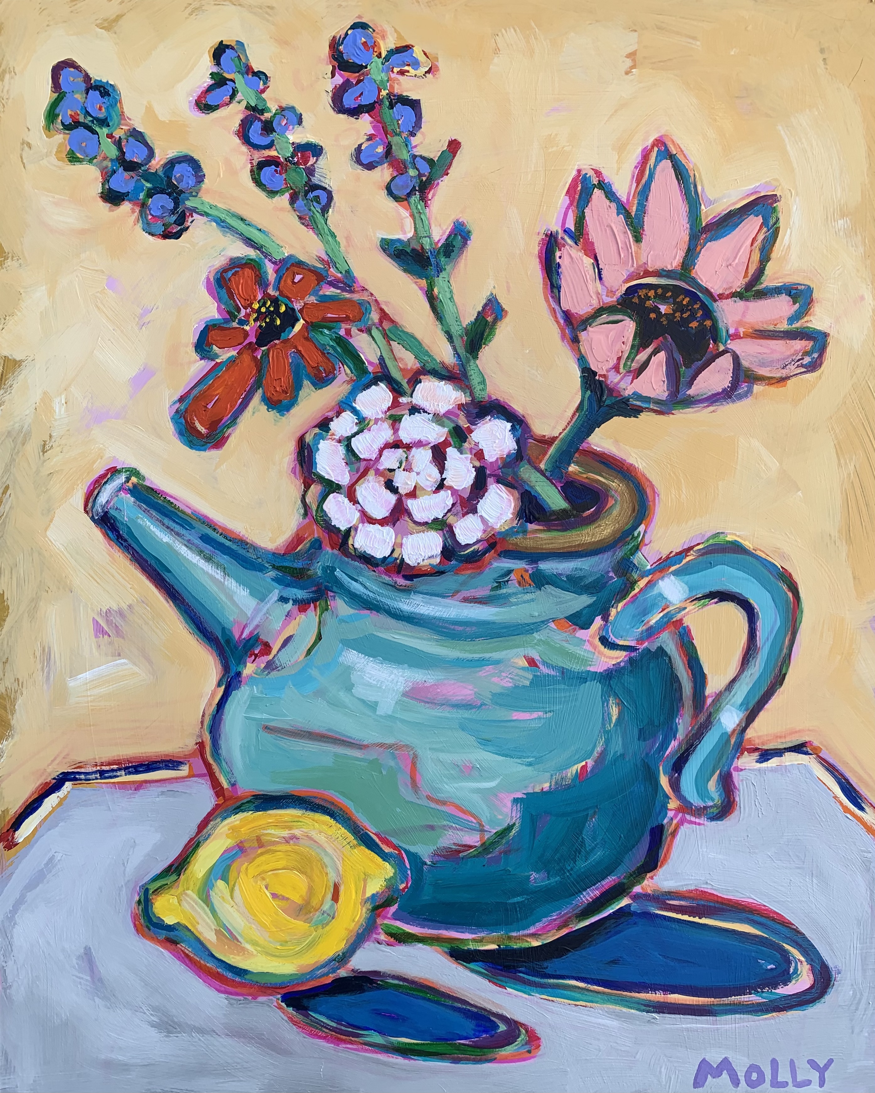 Backyard Bouquet 2, 20×16 (sold)Apple Blossoms, 30×30 (sold)Poppies and Lavender, 30×30 (sold)Teacup, Daffodil, and Glory of the Snow, 8×8 (sold)Watering Can #2, 30×30 (sold)Watering Can, 30×30 (sold)Tea Party, 11×14Teapot, Zinnias, and Butternut, 24×30 (sold)Zinnias and Daisies, 30×24 (sold)Zinnias, Pears, and Cherry Tomatoes, 20×16 (sold)Her Last Pick from the Garden, 20×16 (sold)Tulips in a Jar, 40×30 (sold)