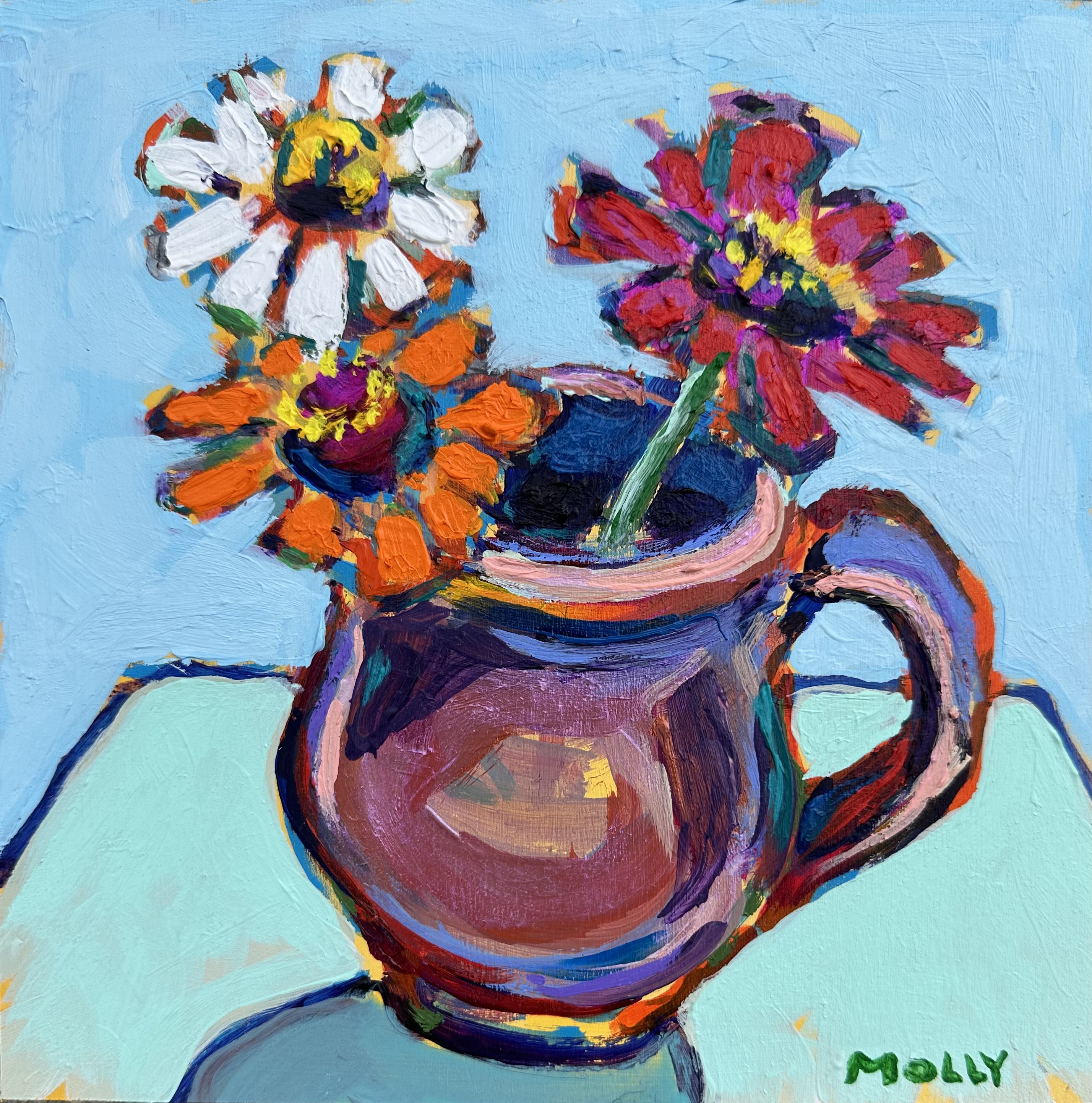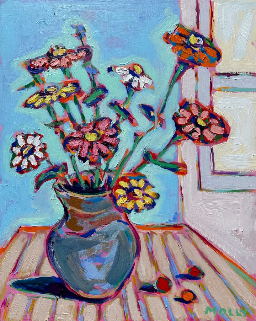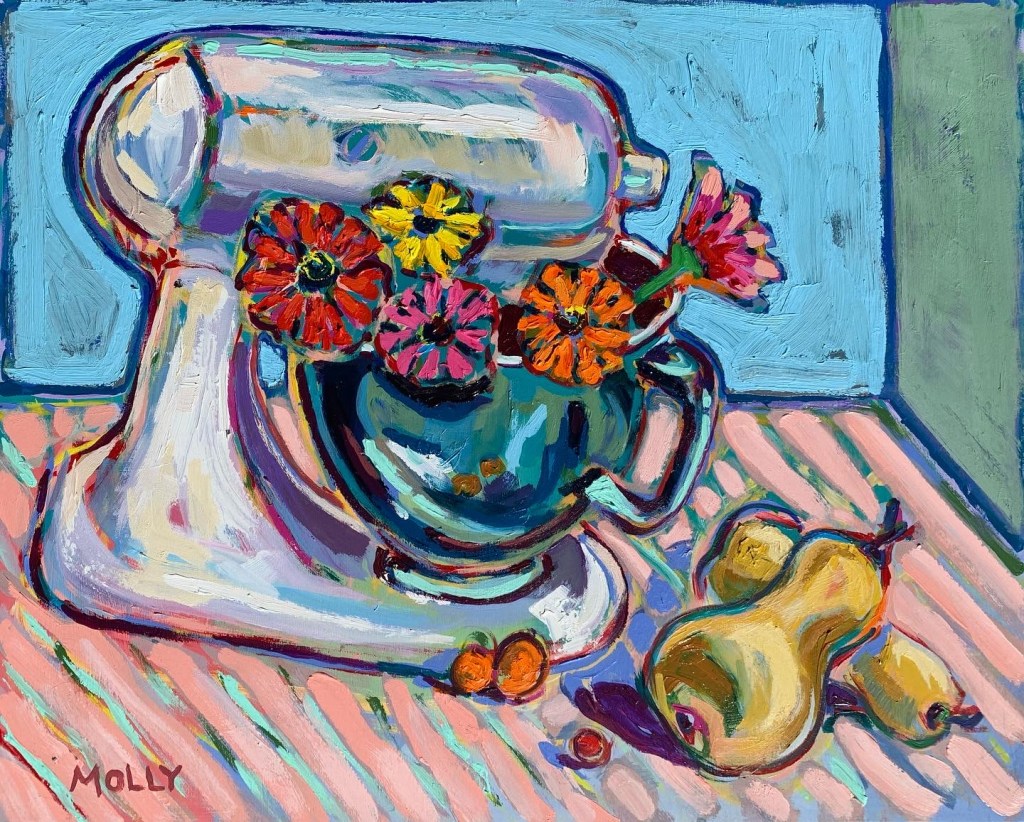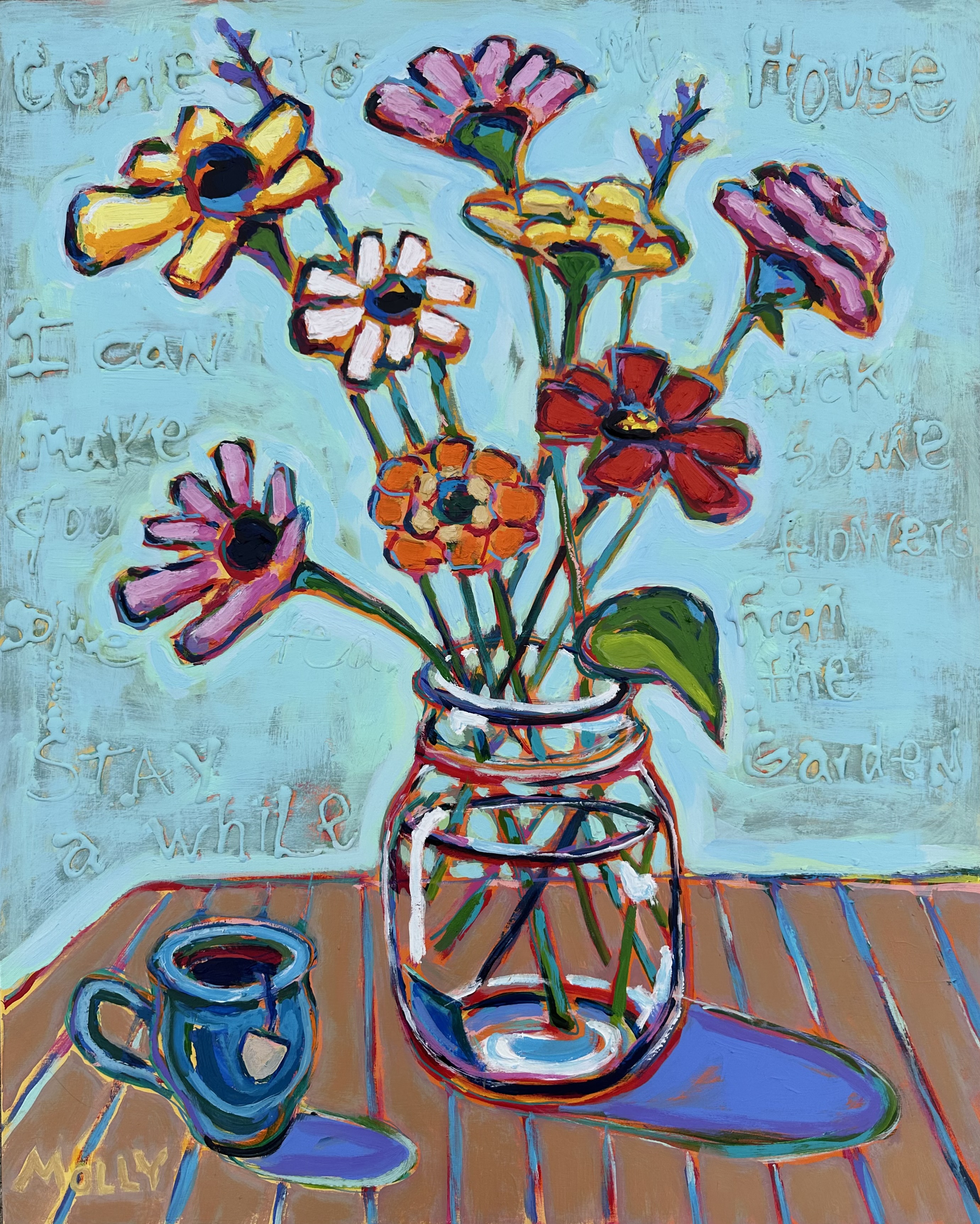 Backyard Bouquet 2, 20×16 (sold)Apple Blossoms, 30×30 (sold)Poppies and Lavender, 30×30 (sold)Teacup, Daffodil, and Glory of the Snow, 8×8 (sold)Watering Can #2, 30×30 (sold)Watering Can, 30×30 (sold)Tea Party, 11×14Teapot, Zinnias, and Butternut, 24×30 (sold)Zinnias and Daisies, 30×24 (sold)Zinnias, Pears, and Cherry Tomatoes, 20×16 (sold)Her Last Pick from the Garden, 20×16 (sold)Tulips in a Jar, 40×30 (sold)