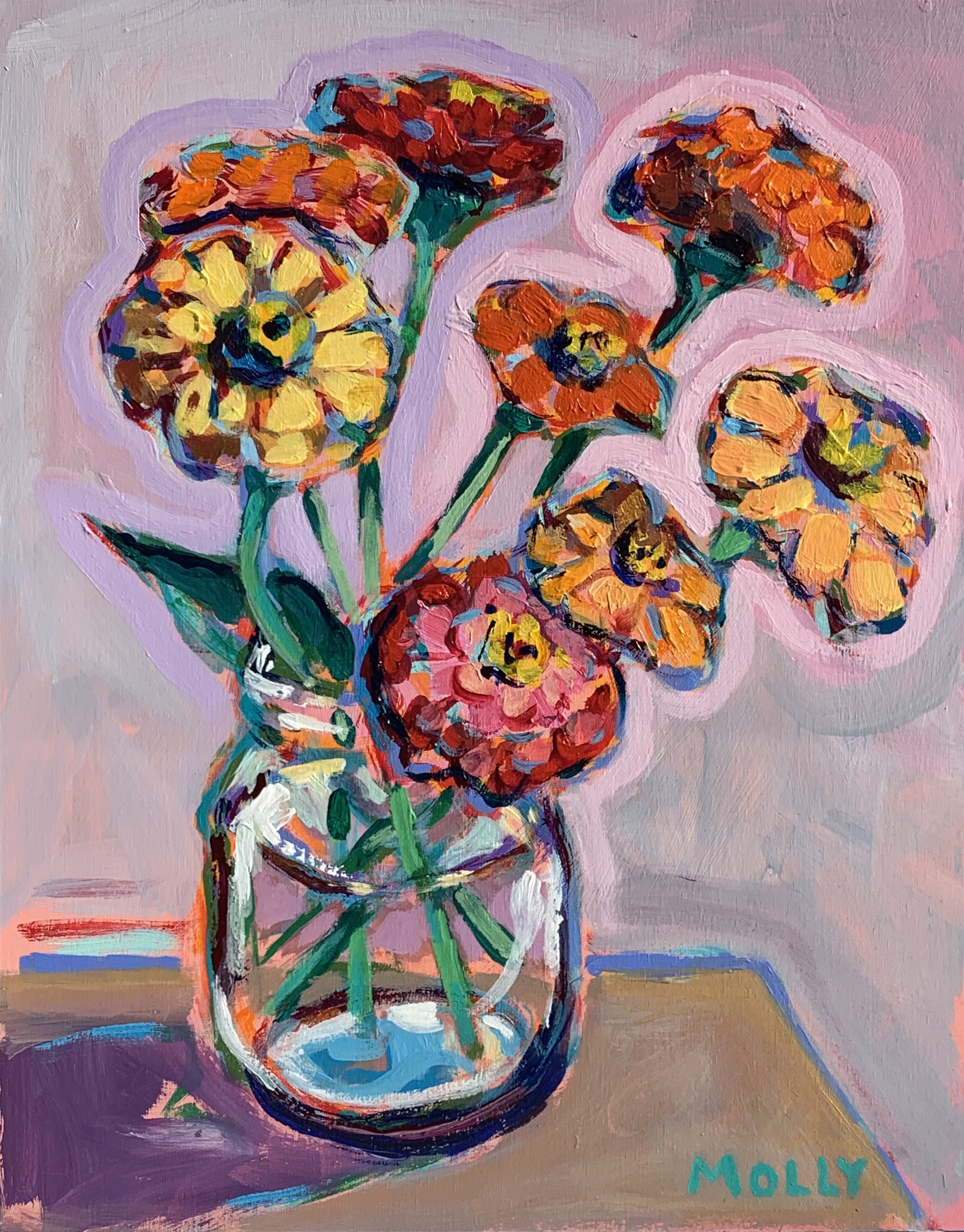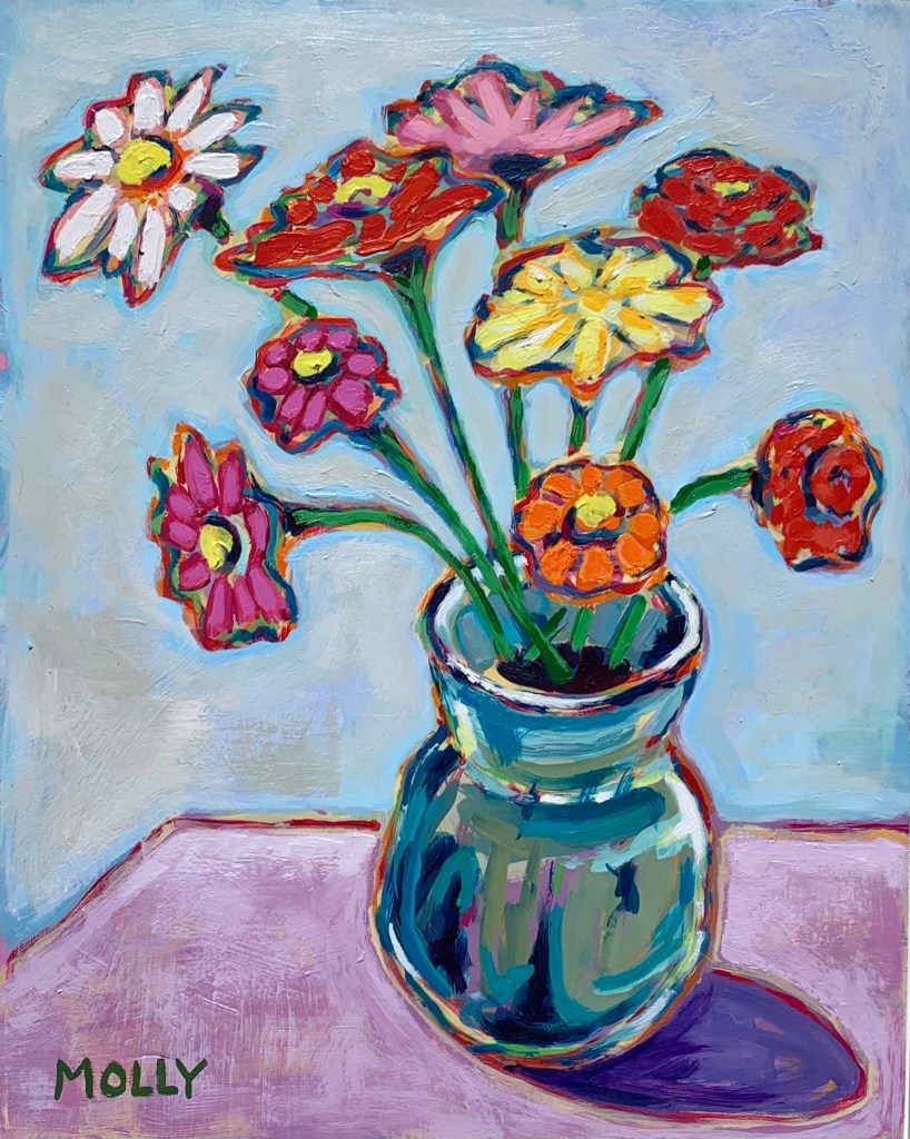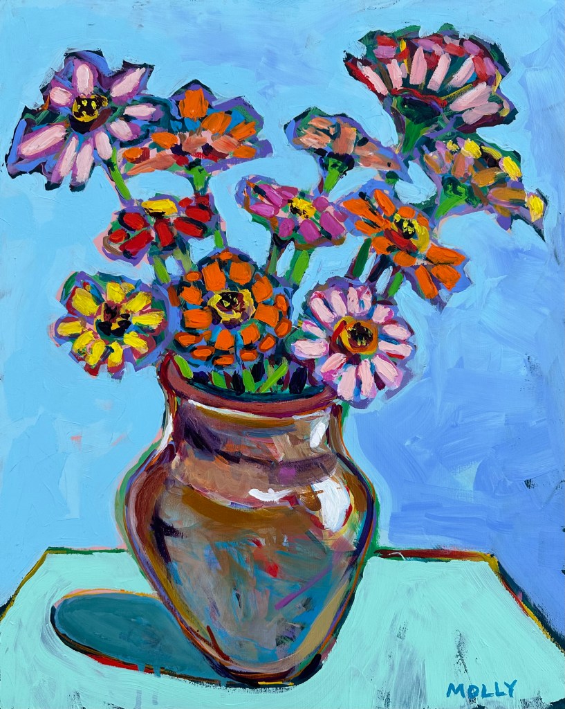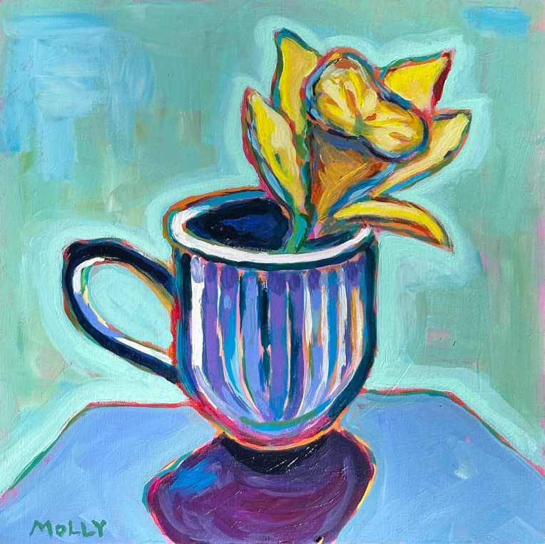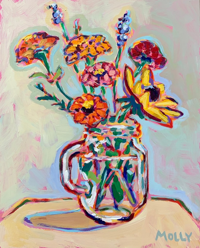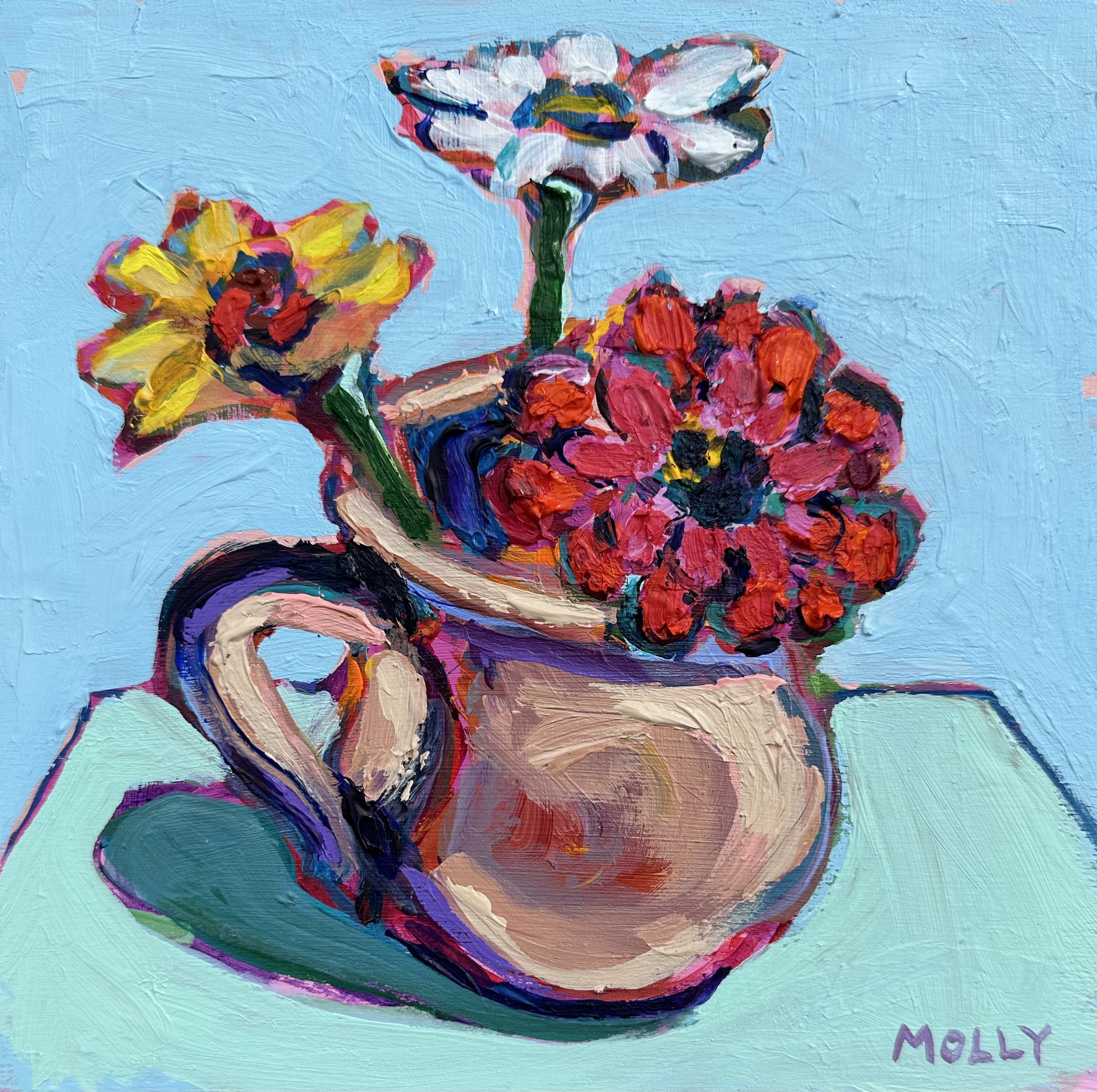 Backyard Bouquet 2, 20×16 (sold)Apple Blossoms, 30×30 (sold)Poppies and Lavender, 30×30 (sold)Teacup, Daffodil, and Glory of the Snow, 8×8 (sold)Watering Can #2, 30×30 (sold)Watering Can, 30×30 (sold)Tea Party, 11×14Teapot, Zinnias, and Butternut, 24×30 (sold)Zinnias and Daisies, 30×24 (sold)Zinnias, Pears, and Cherry Tomatoes, 20×16 (sold)Her Last Pick from the Garden, 20×16 (sold)Tulips in a Jar, 40×30 (sold)